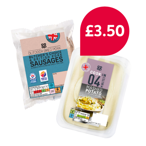 Co-op Pork Sausages / Co-op Mashed Potato.